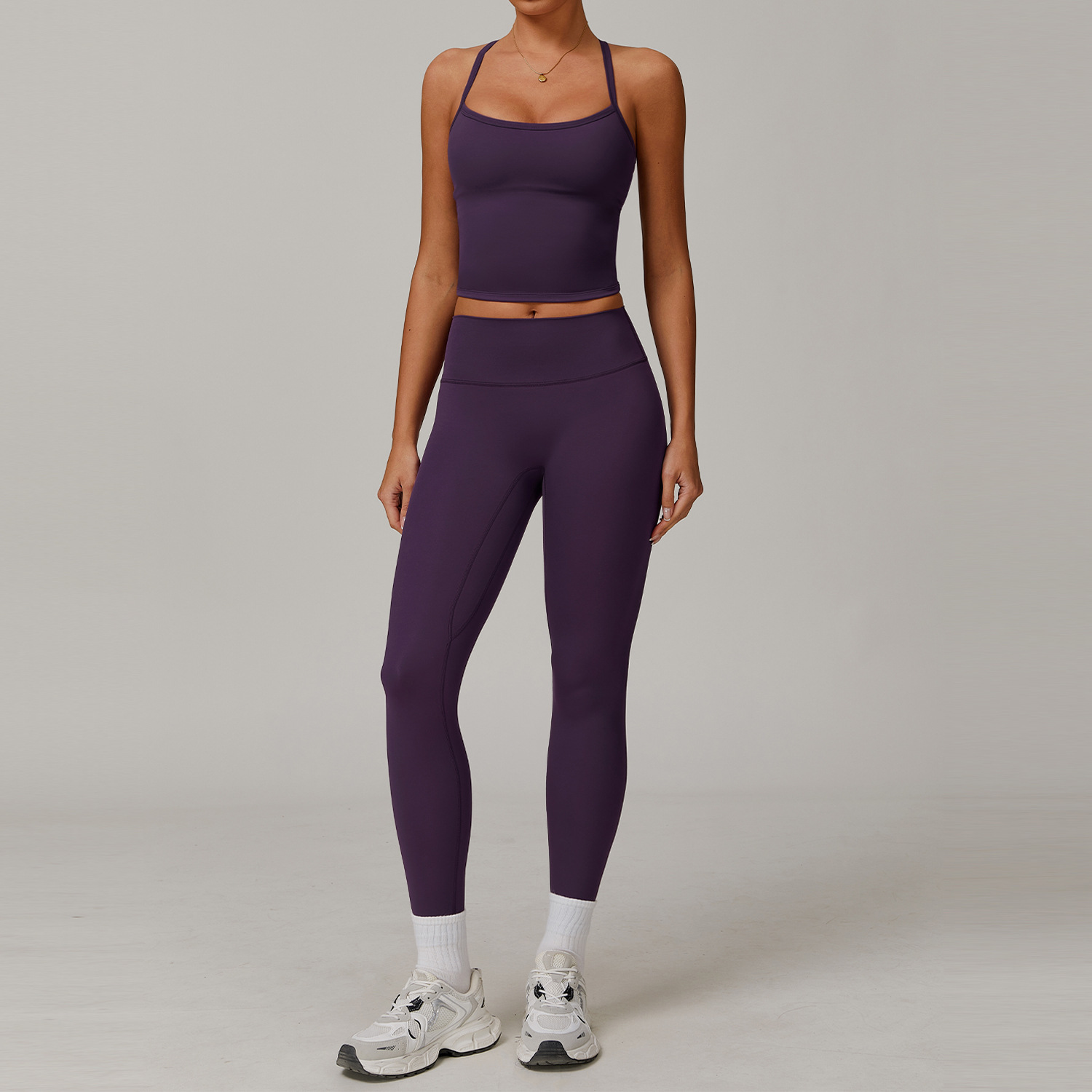Dark Purple Seamless Yoga Set – Halter Sports Top & High Waist Leggings